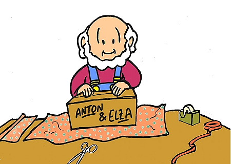 Hij maakte een mooie kist en schilderde de namen van Anton en Elza erop. Zo heetten zijn twee kleinkinderen. Toen de blokjes klaar waren pakte hij ze in de kist. Ze pasten allemaal precies. Met inpakpapier en plakband maakte hij het helemaal af.