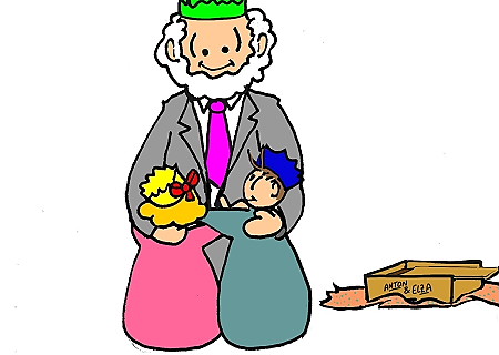Toen ze de deksel opschoven en de blokjes zagen konden ze hun ogen niet geloven. 'Zeker een miljoen blokjes!' riep Elza. Samen pakten ze Opa stevig vast en riepen hoe blij ze waren met zijn kado.