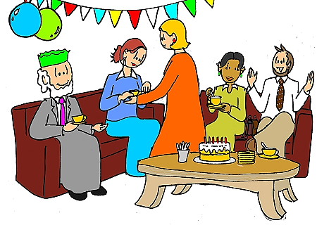 Toen stond Opa op om bij papa en mama en de rest van de visite te gaan zitten en te praten. De kinderen bleven spelen met de blokjes terwijl Opa genoot van zijn koffie en taart.
