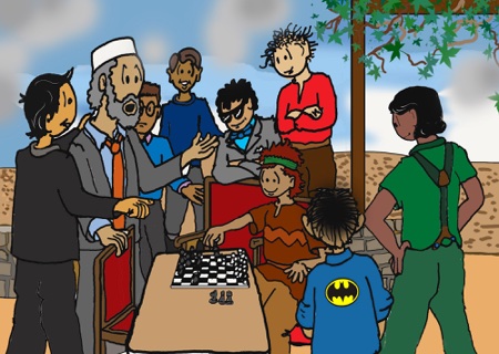 zelfs helemaal alleen tegen hen speelde en dat hij toch won. Nou