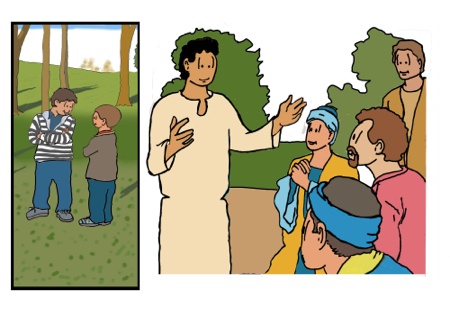 op hun beurt moeten wachten als Jezus in gesprek was met iemand