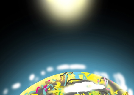 Aan het einde van de tweede dag lag er water over de gehele bodem en hoog in de blauwe lucht waren er wolken te zien.