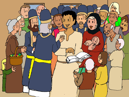 Intussen was het huis, waar Jezus was, vol met mensen. Uit de hele