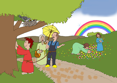 hoe een vogel eruit zag, dat de bomen takken en bladeren hadden;