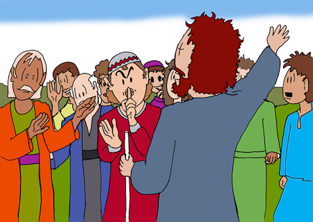 maakte waardoor zij Jezus niet konden horen. Ze snauwden hem uit,
