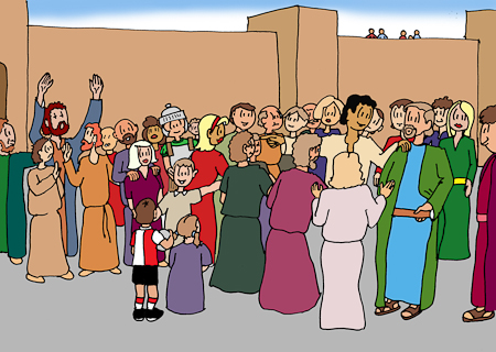 Plotseling stond Jezus stil. Barts geroep was niet voor niets geweest! Jezus had Bart gehoord. Hij draaide zich om, keek in de richting van Bart en zei tegen de mensen, 'Roep hem om hier te komen'.
