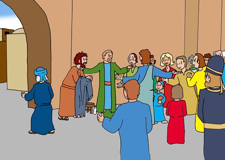'He man, je moet opstaan, want Jezus wil dat jij naar hem toe komt', zeiden de mensen tegen Bart. Bart gooide zijn jas af en kwam overeind. Nu begonnen de mensen hem te helpen zodat hij in de juiste richting liep om bij Jezus te komen.