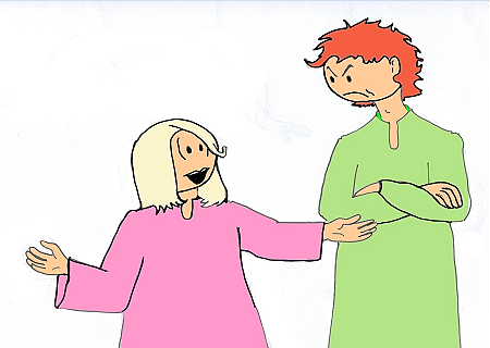 'Hoe durf je zoiets te zeggen van onze Koning! Als er mensen zijn die boos en gemeen zijn, dan zijn het mensen die net als jij, kwaad van de Koning spreken, terwijl Hij ons alleen het goede wil geven!'