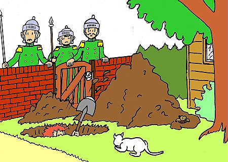 Ondertussen is de laatste knecht... even weg gegaan om iets op te graven uit zijn achtertuin...