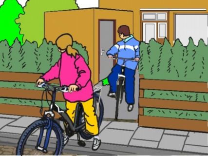 Gelukkig kwam er geen verf op de fietsen en lukten het de kinderen om de fietsen naar buiten