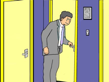 Hij hoorde niets en ging daarom rustig de trap op. Met zijn oor tegen de deur klopte hij aan. "Jan, ben je daar?" Pa hoorde niets en ging Jan's kamer binnen.