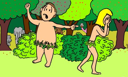 of hij van de verboden vrucht had gegeten draaide Adam zich om en zei:'U had die vrouw niet