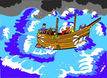 God zorgde ervoor dat het enorm ging stormen. Zelfs de stoere matrozen werden er bang van. Om niet te zinken gooiden ze alle spullen die ze hadden in zee.