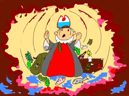 In de buik van de vis bad Jona tot de Here God. Hij wilde gered worden, hij wilde nu wel naar Nineveh gaan. "Here God, ik zal nu echt naar U luisteren!"