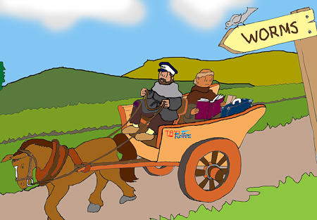 de kerk. Met bevende knieƫn ging Maarten naar de stad Worms voor deze