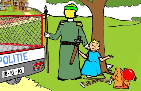 politieagent voor hem. "Ben jij Mefi?" vroeg de agent. "Ja", bibberde Mefi. "Jij moet met