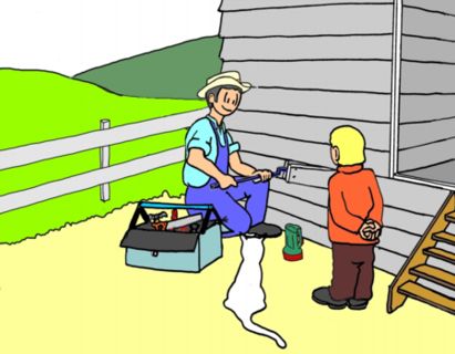 een colonne regelrecht op de schuur af! Daarom is de boer, die