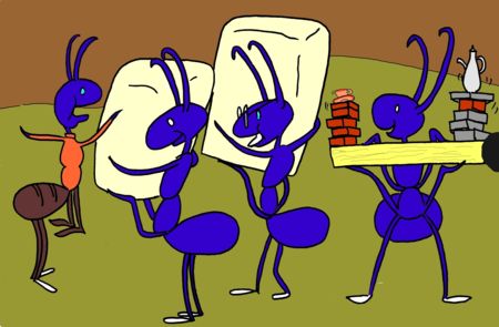 land van de boer om daar een nieuwe mierenhoop te bouwen. Ik zal