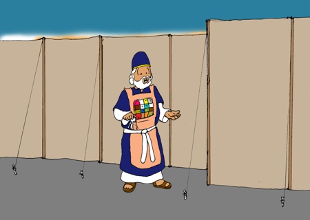 aan. Het is inmiddels ochtend geworden. Eli moet de tabernakel