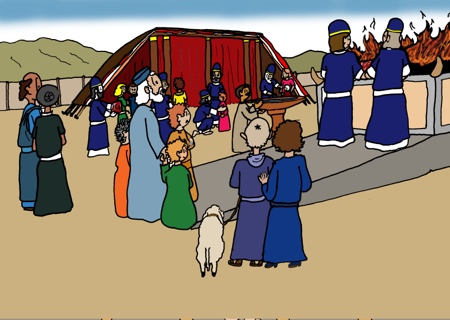 Samuël kijkt toe terwijl de priesters het offer brengen. Als ze de