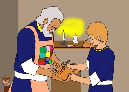 Hanna draait zich om en laat Samuël achter bij de priester Eli. Ze gaat met de rest van de familie terug naar Rama, waar ze wonen. Eli neemt Samuël mee naar zijn huis. Meteen gaat Eli Samuël opleiden om als priester in dienst van God te staan.